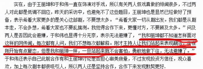 眼看绯闻越演越烈,王丽坤只能出面解释,都是“狗仔”的断章取义,现场还有其他工作人员。