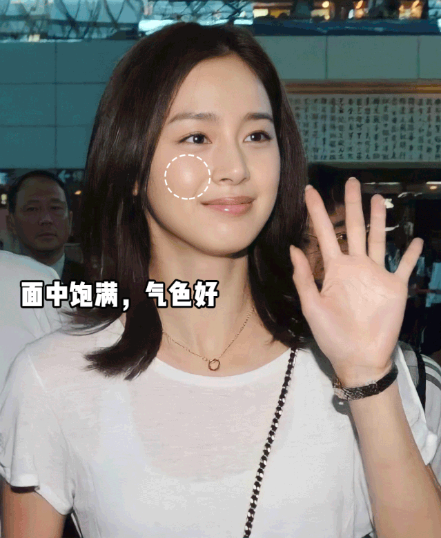 显贵气的脸颊笑起来面中是亮而饱满的,颧骨圆圆的,给人一种不愁吃穿的且保养得很好的有钱感。