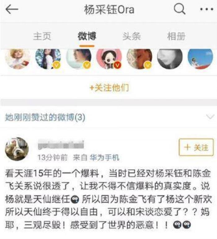 于是在她公布与陈金飞恋情时,网上也是一片哗然,因为她比陈金飞的干女儿刘亦菲还要小几岁,而关于杨采钰为了钱和资源求上位的传闻也层出不穷。而且事实也确实是杨采钰在公布了与陈金飞恋情后,资源也越来越好,接拍了冯小刚的电影《芳华》,后来又合作了《只有芸知道》。