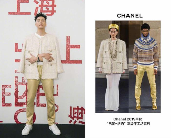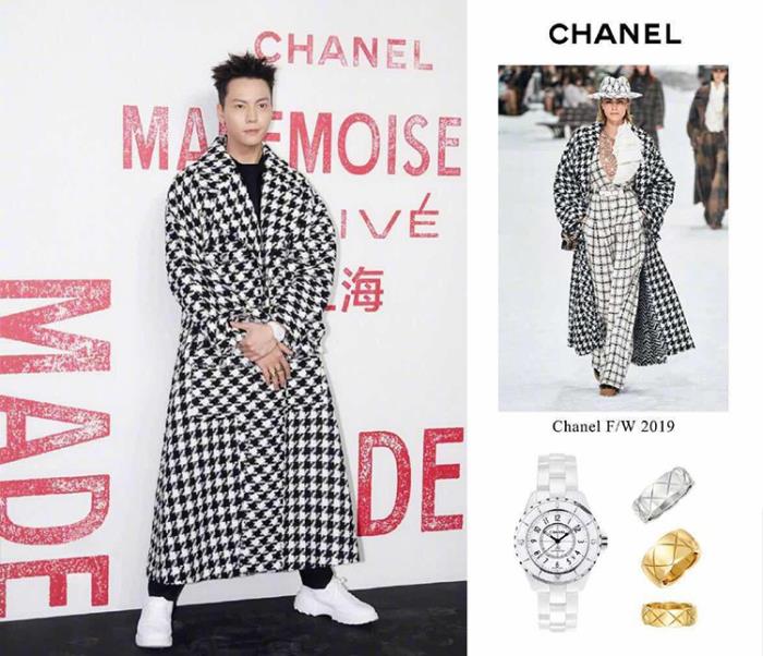 之前陈伟霆也经常穿香奈儿的女装,算上这次都数不清多少回了。