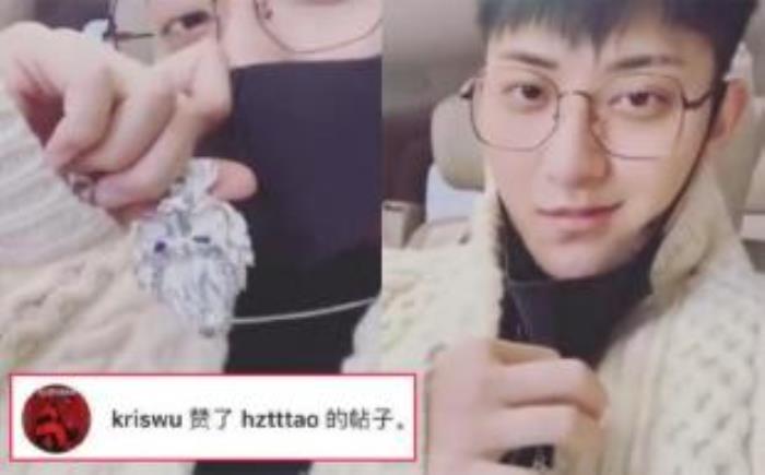 近日,黄子韬在社交网站晒出视频,视频中黄子韬戴着吴亦凡送的项链,并一只手举起来“炫耀”。随后有网友发现吴亦凡点赞了黄子韬这条动态,牛桃互动也是很有爱啦。此前,二人曾于2018年12月31日在东方卫视跨年晚会上同台拥抱。