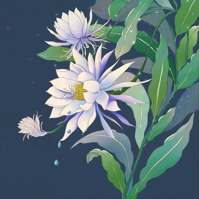 直到有一天,一位枯瘦的男子从此处经过,看到昙花的失落的神情,便问道“你为什么如此哀伤?”花神很是惊讶,因为如果是神仙,头上会有金光闪耀,如果是妖魔鬼怪,头上便会有黑气萦绕,而此人头顶空空如也,明明只是一个凡人,却为何能看到自己的真身?花神并没有纠结于此,犹豫了很长时间仍是没有开口,男子遂离去。
