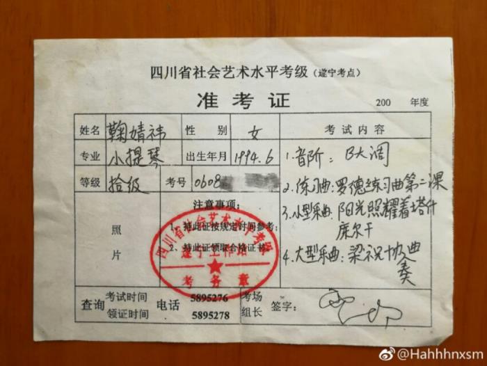 还有小鞠的小提琴考试准考证,以及英语老师写给她的信,小时候的小鞠是一个文静话很少的孤独小女孩