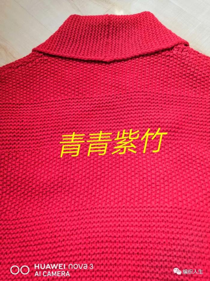 针法:搓板针30行,单桂花针30行交替循环。 此件毛衣是分片织的,整体比较容易,领子是与前片一同完成的,只是在肩部的针全部减完后,余下的34针就是领子的针数,开始织搓板针时每4行加织一次德式往返(23针),这样织出来的领子很平整、圆顺、得体。
