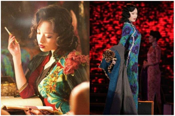 汤唯在电影《色戒》中最令人惊艳的就是她穿旗袍的样子,据说在影片中总共换了27套旗袍,每一套都衬出了汤唯的女神气质,尤其是这件淡蓝色旗袍,配上一头黑发和汤唯青涩的面容,立马让汤唯的角色变得灵动起来,整个人也是非常具有文艺气质,有一种岁月静好的画面感,穿什么旗袍都好看,难怪汤唯被大众称为“气质女神”。