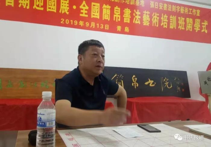 《中国书法报道》和《青少年书法报》分别在青岛设立创作培训基地,中国书协副主席毛国典先生题写的“张日安书法刻字艺术工作室”、中国书协理事王志安先生题写的“中国书法与刻字青岛创作培训基地”同时揭牌。