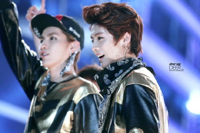 据说是鹿晗第一次中分造型,而之后的舞台装就像大变活人一样,鹿哥撩起刘海加上金色金属风服装,十分活力、充分展现了鹿晗的可塑性。