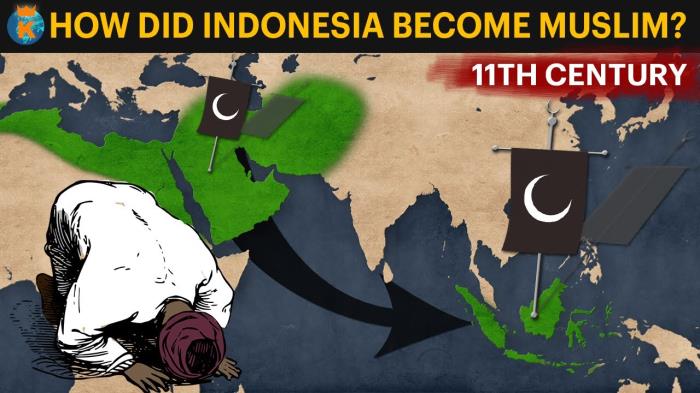 因为伊斯兰教是通过与南阿拉伯和印度苏菲派的人进行贸易而在东南亚出现的,这一过渡比存在冲突的中东或北非更加和平。虽然在印度尼西亚的传播过程要缓慢一些,但通过商人精英和贵族创造的不同特权,君主政体的存在使得宗教更容易在平民中传播,就像基督教在君主政体中的存在使得他们更容易在欧洲王室中传播一样。与此同时,在爪哇岛,支持印度教的马拉帝国正在崩溃,其中一些新王国通过与贸易有关的同化和对伊斯兰教的皈依而得到了明王朝的支持,因此伊斯兰教取代了印度教和佛教,成为了16世纪末爪哇和苏门答腊的主要宗教。