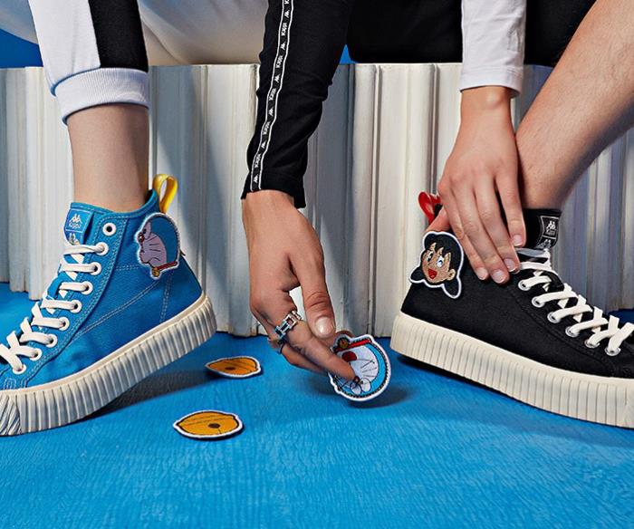 此后,Kappa在联名款上持续拓展更多可能,在今年6月份又推出与哆啦A梦的联名款系列,掀起童年回忆。而与INXX联名的重磅合作,将中国龙图腾元素结合Kappa BANDA新潮串标,诠释了两个潮流品牌极致的潮流设计。