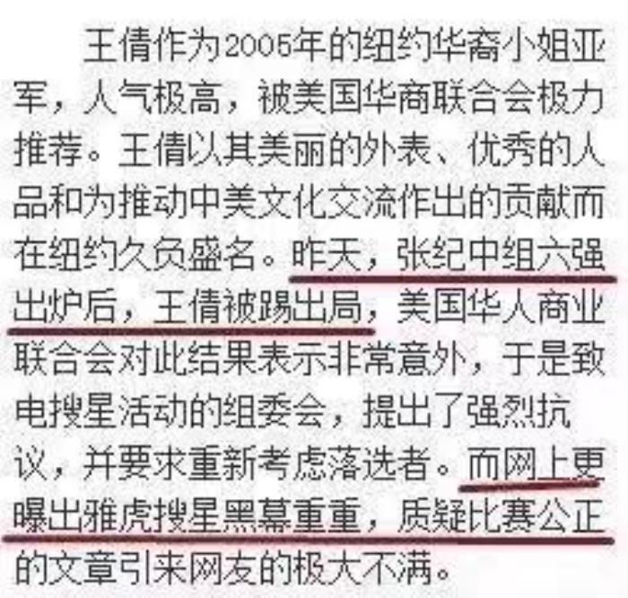 但是,这场比赛的争议还是不小。不过跟赵丽颖没有什么关系,当时张纪中组的王倩拿下2005年纽约华谊小姐的亚军,结果止步6强,引发了网友们的巨大争议。