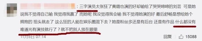 有的人在宋丹丹的微博下把努力发泄在了辛芷蕾身上,认为她光有演技,没有人品,太张狂,称呼她为“三字演员”。