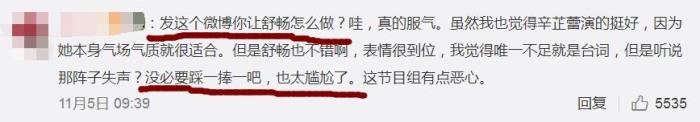 也有人表达了对辛芷蕾这种性格脾气的喜爱,认为输了不服气就就不服气,演得那么一团和气没意思。
