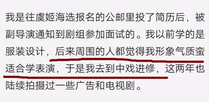 她自己在当时的采访也说了,是因为周围的人说她的气质形象适合表演,才去了中戏进修的。