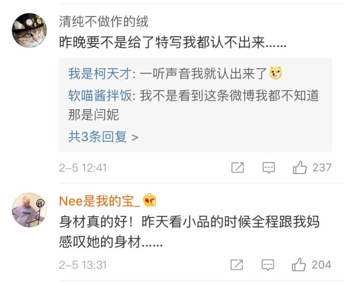 吃瓜群众们随随便便一张截图依旧很纤瘦,网友表示:“开始都没认出来是闫妮,以为是哪个刚红的女演员。”“20岁的时候我都没有这个身材。”“闫妮今年演了小品,不得不说闫妮这身材也太好了吧!少女一般的身材,谁信她快50了呀好羡慕啊。”