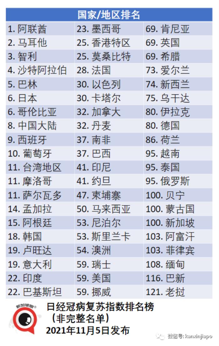 日经复苏指数新加坡从第5名狂跌至100名与蒙古国同列,比阿富汗靠前1位