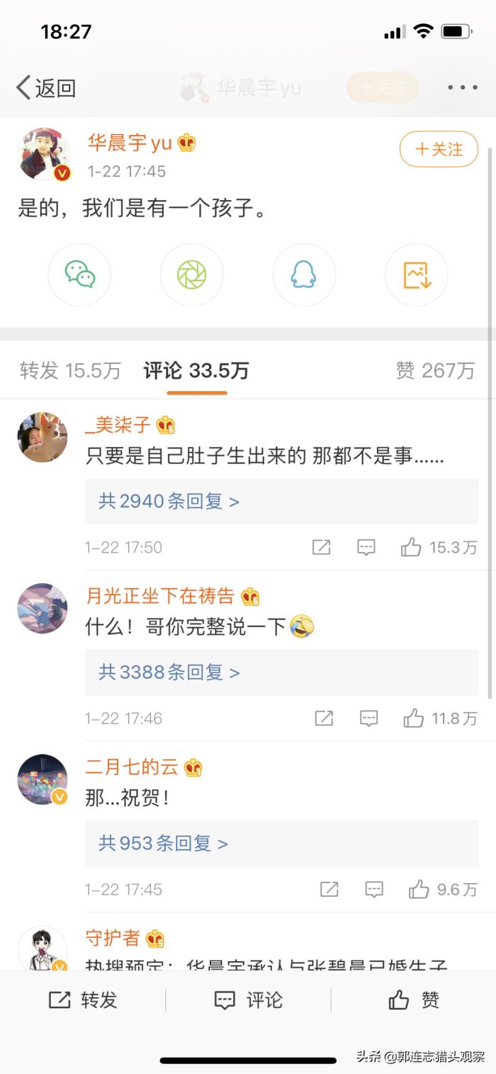 华晨宇的第一份声明比较简单,直接承认了自己和张碧晨有了孩子。