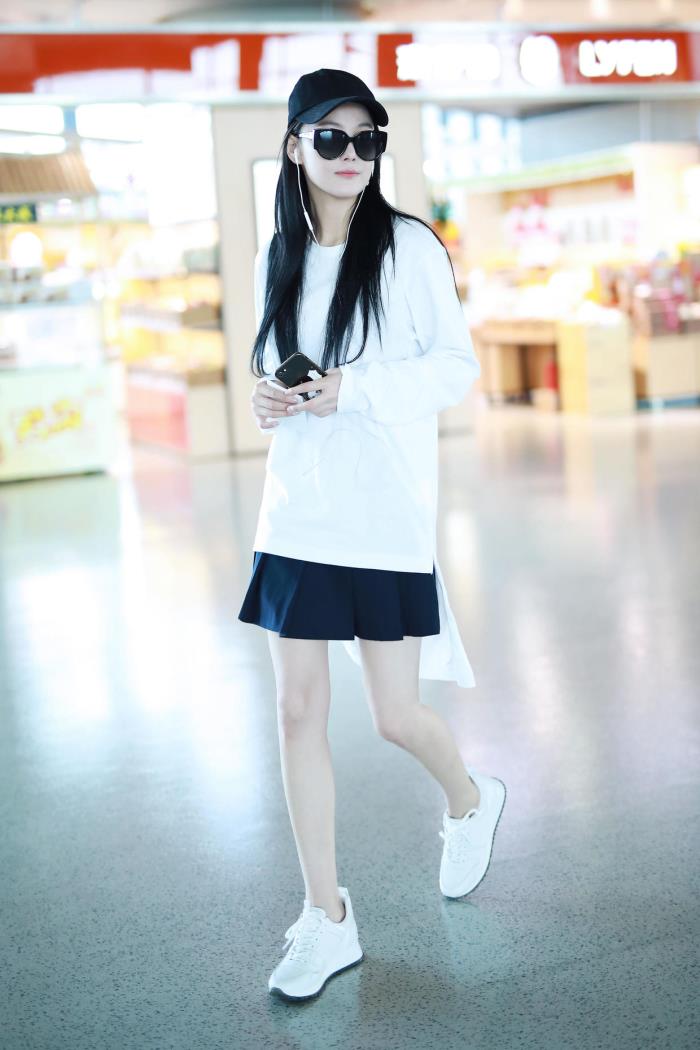 条纹衬衫已经是现如今非常流行的一种单品了,无论是男生还是女生都可以穿,而且张馨予选择这种蓝色和白色的条纹,看上去极其清爽,一下让她年轻了许多,下半身搭配半身裙也非常的简单,上衣塞进腰间还能够凸显腰线,脚下再搭配一双平底鞋,看上去舒适度还是很高的,可以和这条九分裤结合起来,秀出她的大长腿,从而进一步达到显高的目的。
