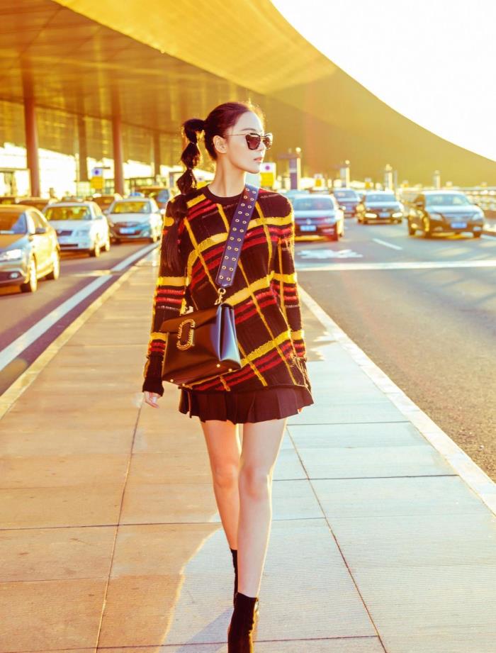 虽然现在已经来到了春天,但是大家还是要多去尝试一些较为保暖的服饰,比如毛衣就是春天不可或缺的时尚单品,而张馨予选择了这种格纹毛衣,看上去还是挺时尚的,黑色,红色以及黄色三种颜色拼接起来非常的时髦,形成了撞色系,视觉上也很冲击感,下半身再搭配短裤,秀出了她的大长腿,整个人的身材比例看上去也很苗条。