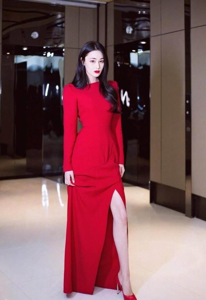 连衣裙也可以打造出不同的风格,就比如张馨予下面这条红色连衣裙,看上去特别好看,这种红色是一种饱和度比较高的色彩,而且结合拖地的长度特别高级,能够拉伸她的身材高度,显高还显瘦,高开叉的设计还能够秀出大长腿,展现出纤细苗条的小腿曲线,特别性感。
