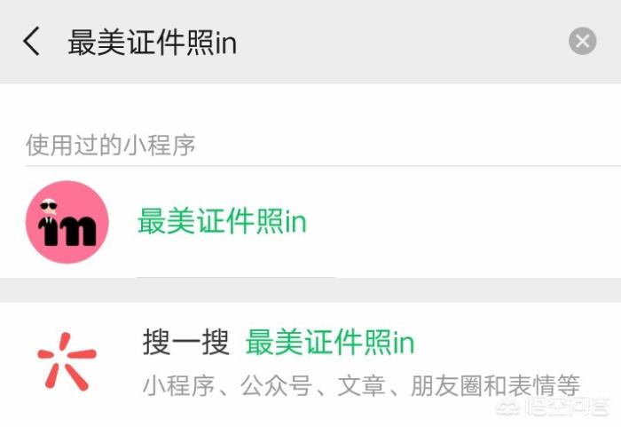 打开微信,点击搜索图标,直接输入“最美证件照in”就可以了,它出出现一个最美证件照及它的logo,如下图所示,那么恭喜你,完成第一步啦!