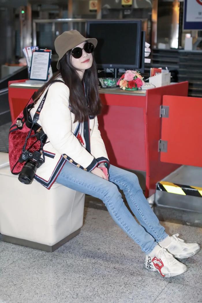 喵总腰部曲线超美,平时穿礼服能把所有人眼睛都看直的那种。机场私服虽然不会刻意放大这个优势,但有时候碰到款式刚好对腰线很友好的单品,就又造福大家了,那可真的是,举手投足皆风情。