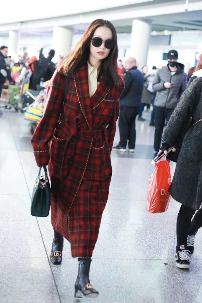 面料亲肤的连衣裙她有好多条,坐飞机的时候穿,感觉没有丝毫的束缚,舒适度之外还会照顾到养眼度,裙角开衩,露出纤细白皙的脚踝,透着小性感。