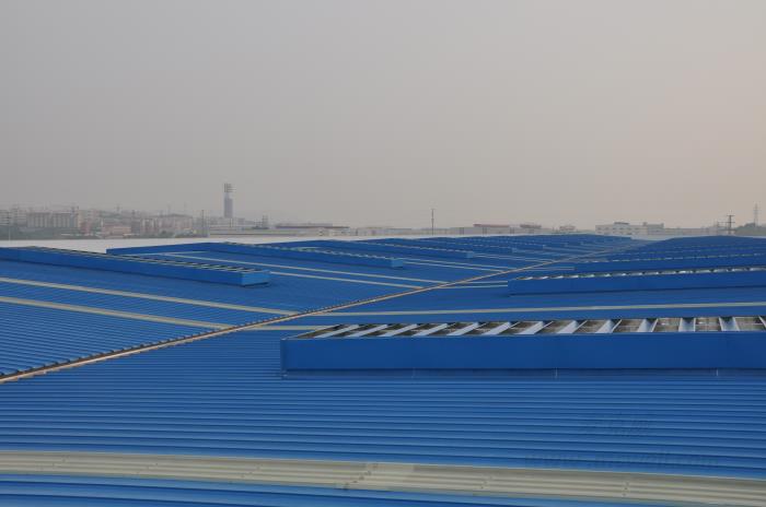 屋顶通风器保证空气流动畅通,无通风死角区域,流动阻力较小;挡风板布局合理,具有良好的避风作用,能够有效地防止室外空气倒灌;并且能够依靠自身结构防水,确保屋顶自然通风器在任何天气条件下不向室内渗透雨、雪,以免影响厂房的正常使用。