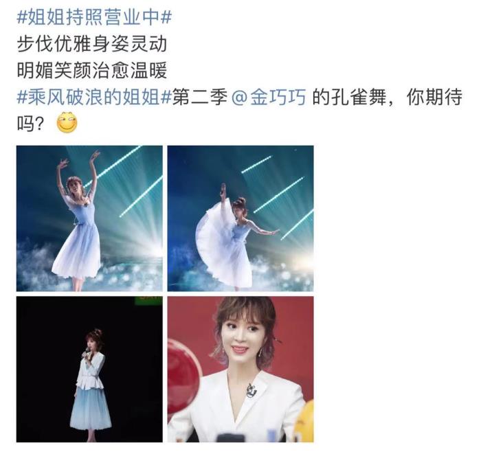 近日参加金巧巧参加《浪乘风破浪姐姐2》,一身浅蓝色公主裙,娴熟的芭蕾动作,仙味十足。她是后来《西游记》续集中饰演的孔雀公主,因为把这一角色演绎活灵活现,所以在演技和颜值均备受观众认可。