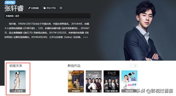 反之张轩睿词条里,女友任家萱是他唯一的明星关系标签。
