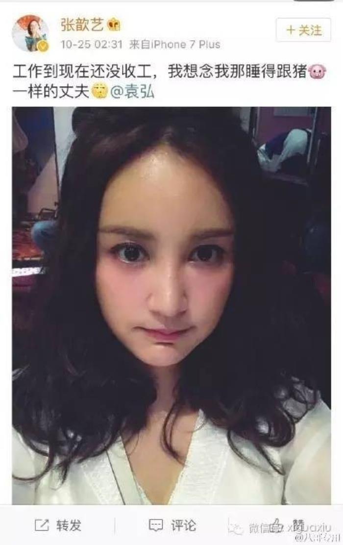之前还有人恶评张歆艺整容,说她下巴假,袁弘也是第一时间就出来维护自己的老婆。