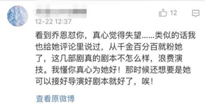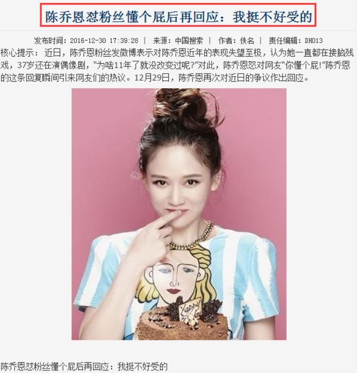 陈乔恩事后又出来回应过这件事情,相信无论是关于37还在演脑残戏,还是关于怼了自己的真爱粉,她都觉得心里不是很好受。