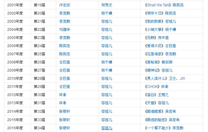 而金曲奖对香港歌手也很包容,陈奕迅也多次参加金曲奖。
