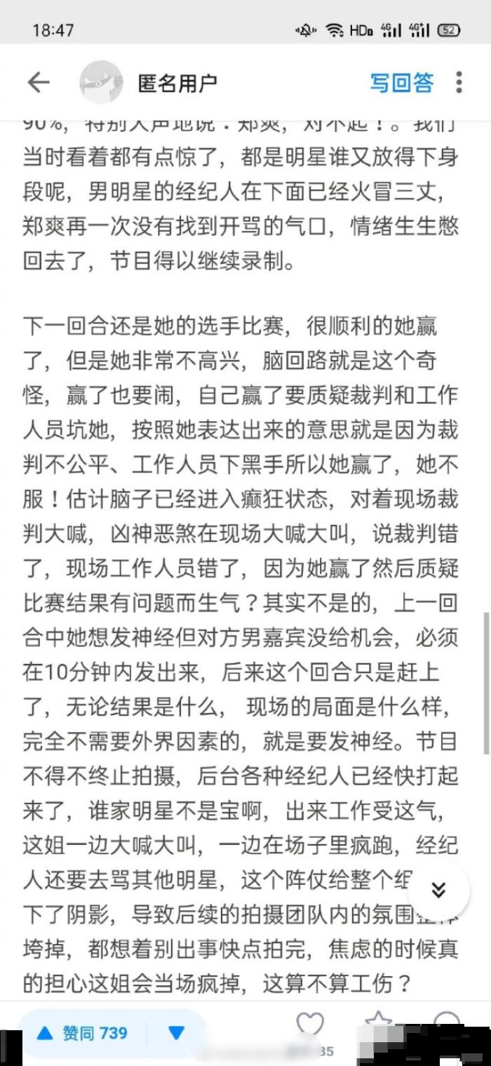 日前,疑似某节目工作人员在某问答平台上爆郑爽的料,指出她不仅收了六千万的天价片酬,还拒绝化妆(包括底妆),不然就委屈想哭,很是任性。