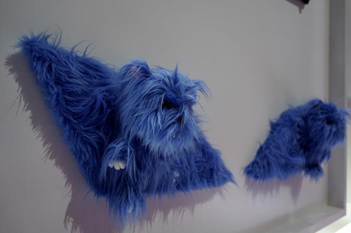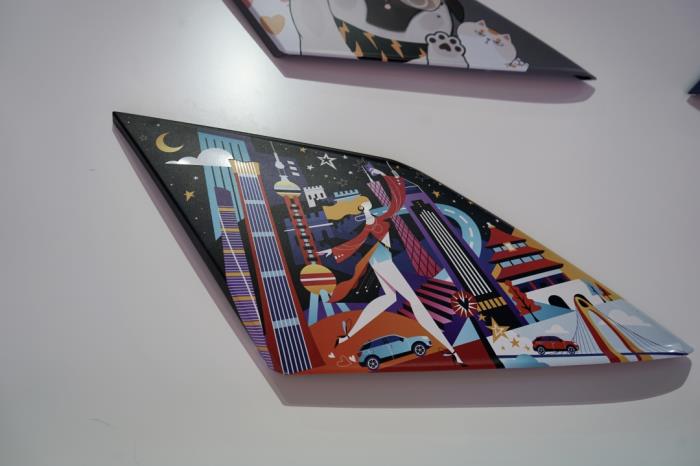 除了立体感极强的兔子玩偶“酷盖”,在一整面墙上,还有蓝色毛绒材质的“酷盖”,酷中带着一丝少女感。