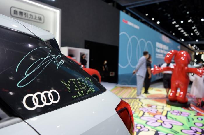 在奥迪展台左侧的大片区域内,能明显看到一汽-大众奥迪为全新奥迪Q2L打造了专属“酷盖引力场”专区,艺术家共创版,以及王一博共创版“酷盖”悉数亮相。
