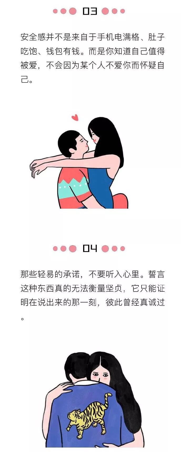 另外,安全感这种东西,只能自己给!不会是对方的几句诺言,也不是对方带来一切看起来很坚固的堡垒。