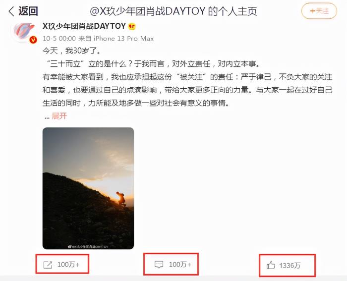 肖战张艺兴过30岁生日微博粉丝互动数据相差悬殊,原来顶流也分人;肖战张艺兴生日只差一天点赞人数却相差十倍,可不是一星半点啊!肖战张艺兴过30岁生日,微博人气相差悬殊有点意外!肖战张艺兴过30岁生日微博动态数据曝光,对比之下他算不上顶流;30岁生日肖战微博动态点赞超1300万张艺兴只有110万,谁是顶流?