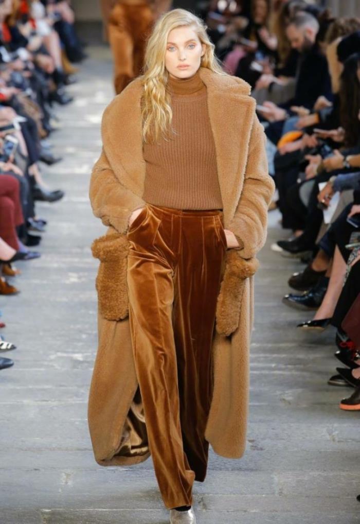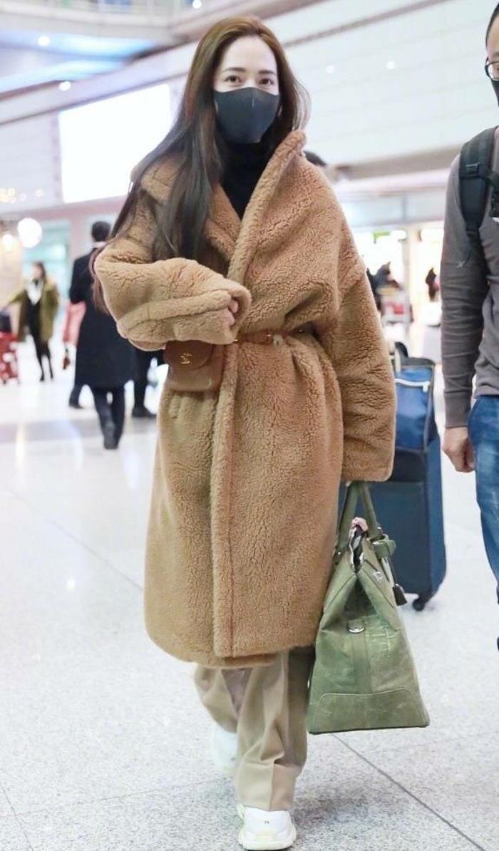 其实戚薇这一身的搭配小编猜测多半是借鉴模特的,只不过不是亮黄色,模特搭配的是比外套更加深的土黄色和有光感的绒裤,小编觉得模特这一身更加好看些。话说冬天羊羔毛真的是屡胜不衰的元素,无论是什么的时尚喜好的朋友们都会为它疯狂。