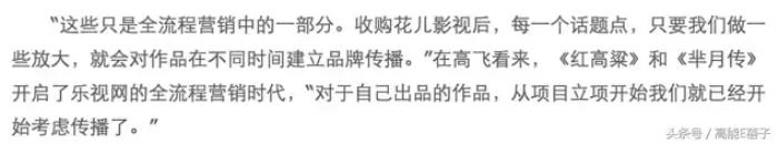 后续花儿影视与乐视的分工基本上为花儿出品精品剧,乐视网负责互联网营销。从项目立项开始,乐视网就已经开始考虑传播。