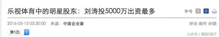 2016年5月份,新闻标题变成刘涛投资5000万,是出资最多的明星股东。