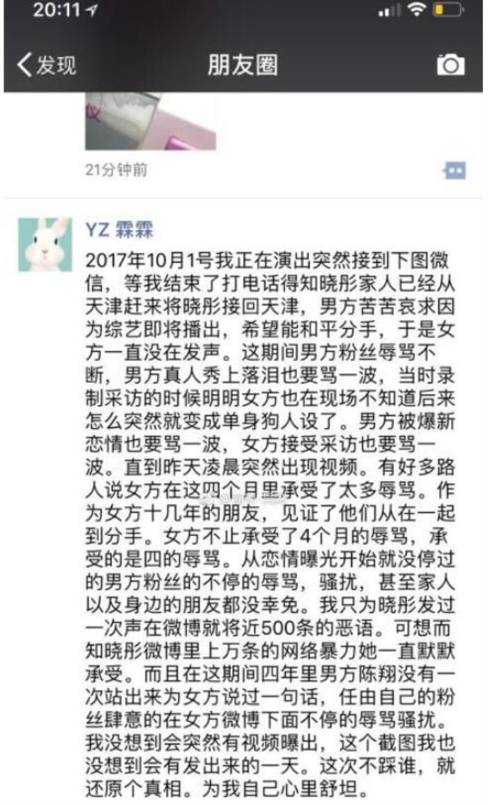 全网喷陈翔不说,毛晓彤的好朋友也忍不住这个时候站出来说话,朋友圈发了一大段话替好朋友洗冤屈。说了那天毛晓彤当场撞见陈翔和江铠同在一起的画面,还说了分手之后毛晓彤默默的承受了很多,总之看了还挺让人心疼的!