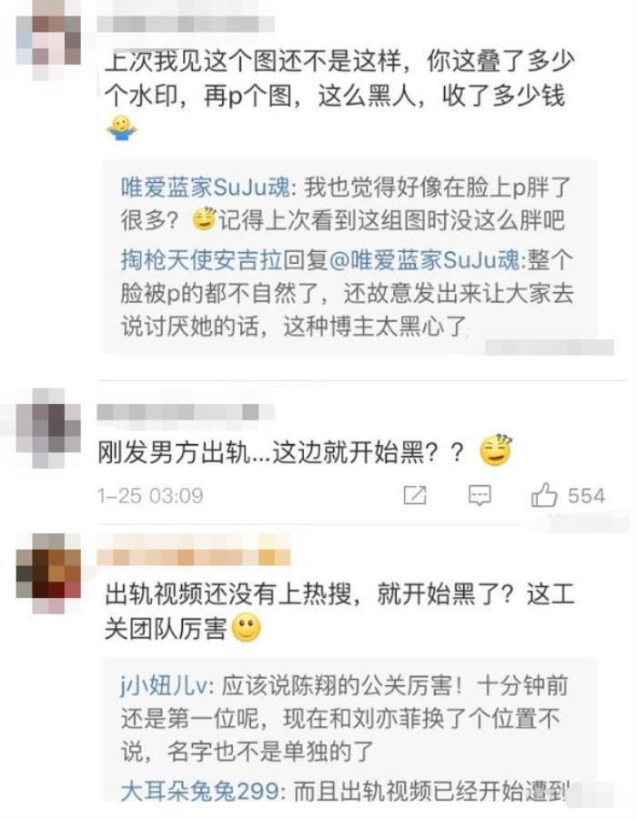 对于这两张照片,很多网友表示这照片是被处理过的,以前也见过这个照片,当时照片还不是这样的,有网友说这摆明是被P胖了的。还有机智的网友说,“男方刚出轨,这边就开始黑了??”…….