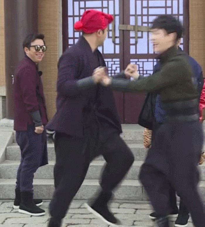 还有小猪和张艺兴的这个转圈圈画面,也是让人挥之不去!旁边的黄渤、孙红雷已经憋不住笑了!