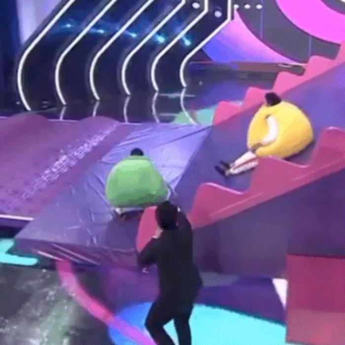 郑爽在某次游戏中,滑下滑梯时,本来是爬了半天爬不起来,结果被没刹住车的许魏洲一脚踹成了第一!哈哈,爽妹子这是不是因祸得福!