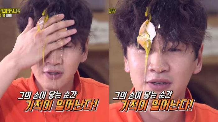 李光洙做小游戏中,也留下了挥之不去的画面!30颗熟鸡蛋中,仅仅混入一个生鸡蛋,他就中招了!