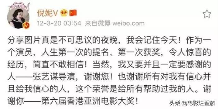 不过,这可并不是倪妮第一次发文感谢“恩师”张艺谋,多年来在各种场合,她也会时常有感而发,提及当年这位伯乐。