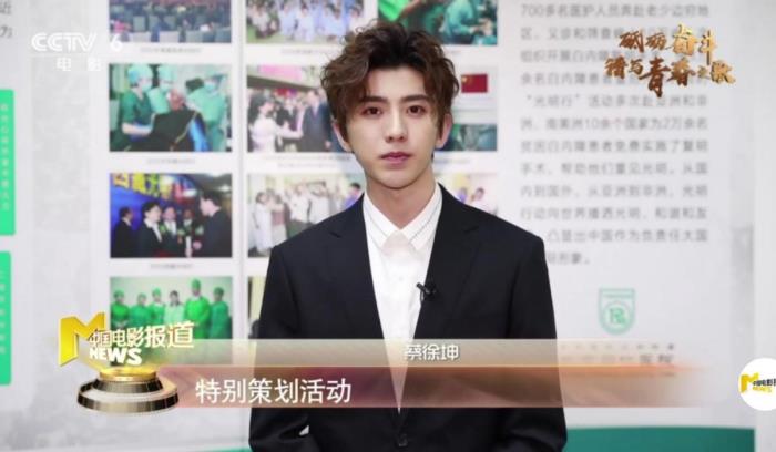 2018年,蔡徐坤在《偶像练习生》中以绝佳的业务能力,超高的颜值,收获了一大批粉丝,成功断层C位出道。出道后的首次央视亮相,蔡徐坤跟随着“星光行动”走进了海南儋州,帮助脱贫攻坚,正能量满满。在2019年五四特别策划《奋斗吧我们的青春》中,随着央视镜头,蔡徐坤拜访了同仁医院,带我们体验了医生的工作,传递了青年标兵敬业乐群精神。平常大家看惯了他在舞台上的样子,卸去舞台妆后的蔡徐坤干净清爽,少年感十足。
