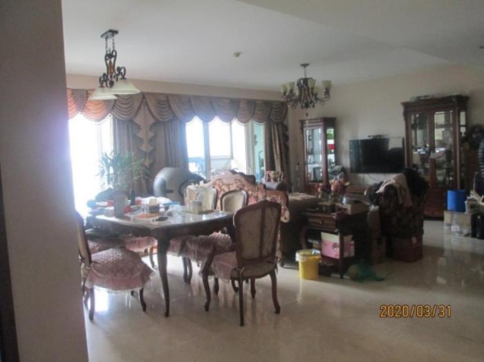 此次法拍房为地上第11层东边套,三室二厅一厨四卫二阳台一书房一储藏室一衣帽间,标准层高,通风采光较好,主卧阳台可见钱塘江景观。但也许是住的时间也有点年份了,房间装修相对简单,没有想象中的富丽堂皇。