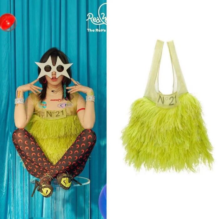 还有Red Velvet的专辑造型也大刀阔斧地二次创作时尚单品,Wendy的这件满身流苏的衣服其实是由包改造来的。