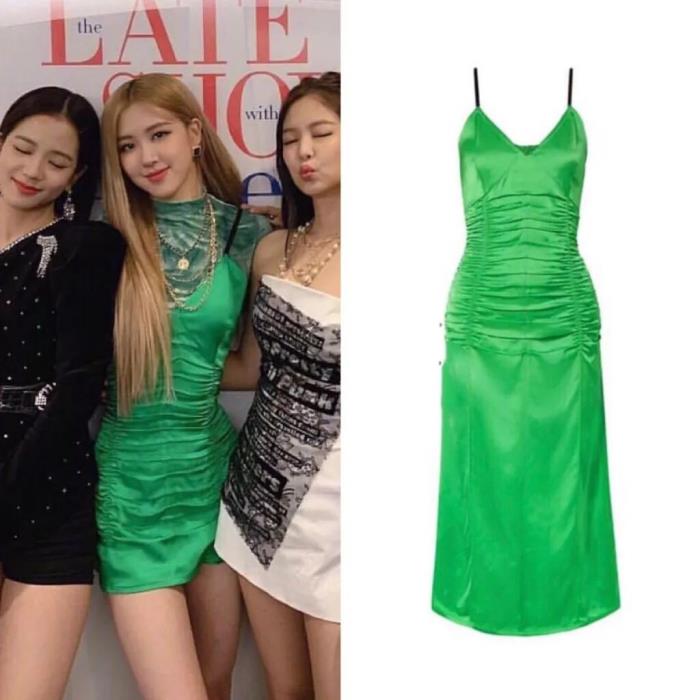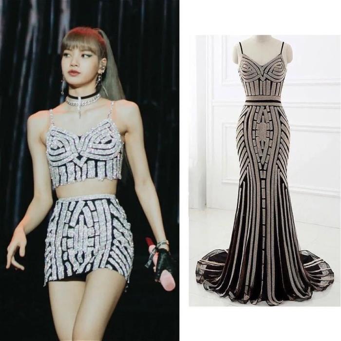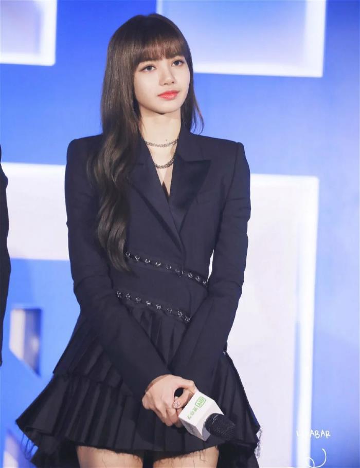 造型师这么改造可能是觉得这条裙子的设计元素实在太冗杂了,想去繁求简;又能通过这样的方式收短衣服整体的长度,显得Lisa腿长。